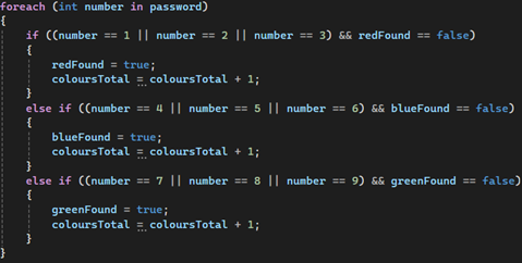 For loop for the colourCount method in passwordMinigame