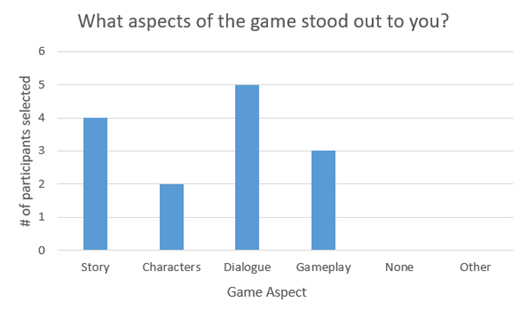 - Story and dialogue were consistently identified as the standout aspects of the experience