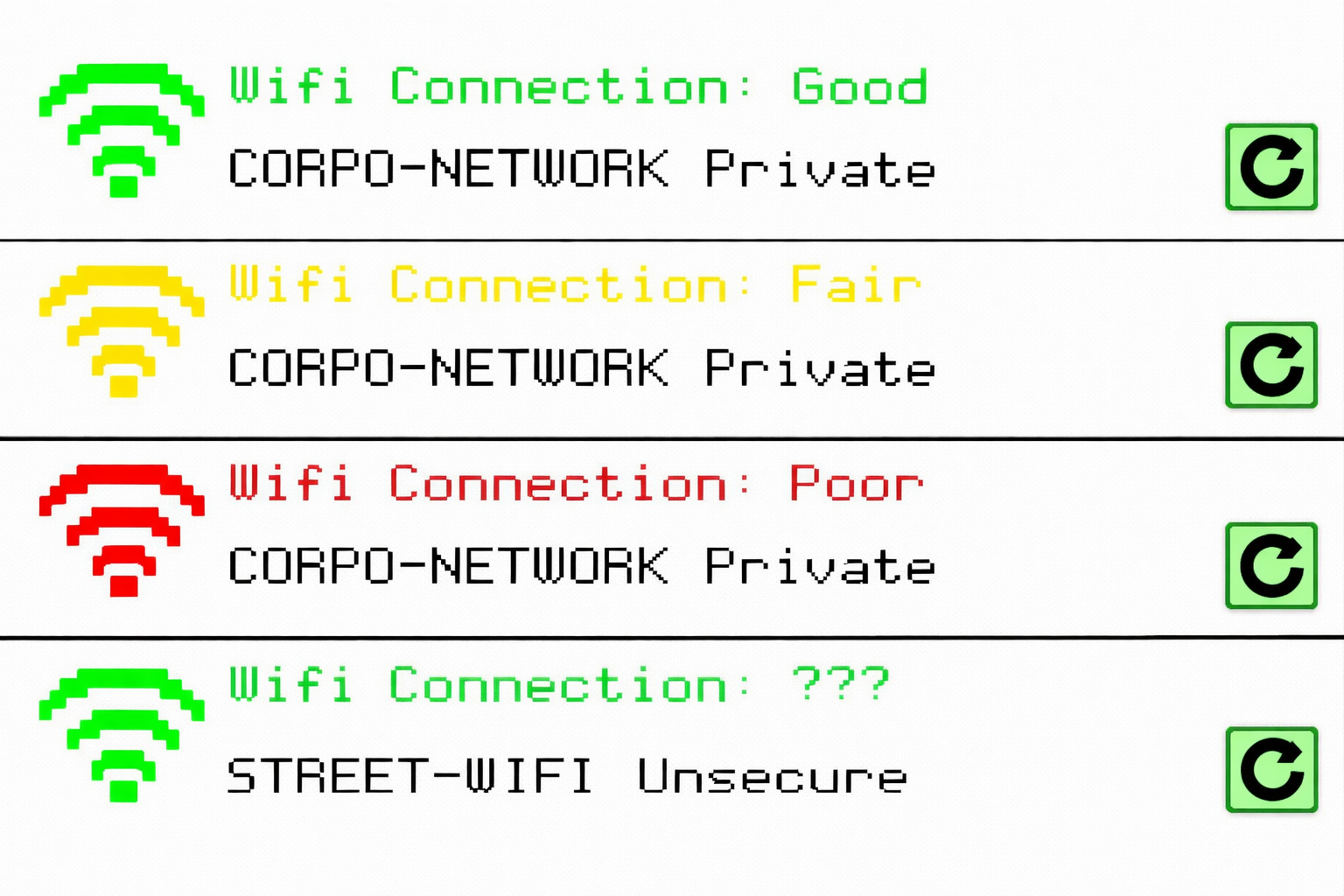 Wi-Fi connections and their statuses