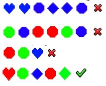 - Shape diversity: symbols are grouped by shape (Circle: 1,4,7 / Diamond: 2,5,8 / Heart: 3,6,9) and more than one shape group must be present